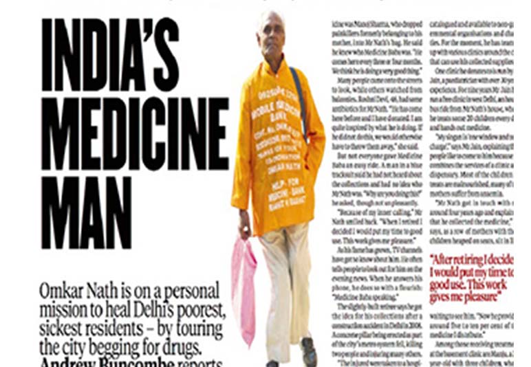 Onkarnath Sharma embarked on his work as a medicine baba in 2008 after seeing the collapse of an under-construction bridge for the Delhi Metro in East Delhi. Numerous people reportedly suffered injuries, and two people lost the fight of their lives. After administering first aid, the authorities sent the injured person home with additional care because they couldn't pay the care expense. The event marked a turning point in his life and affected him so much that he resolved to prevent a repeat.